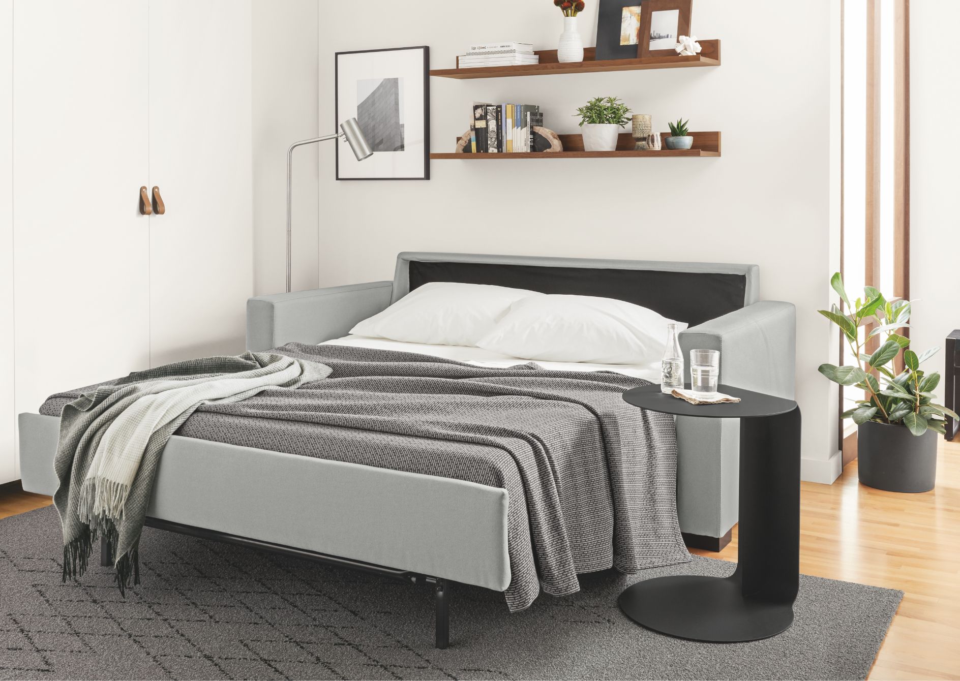 Strategically placed storage units are a quick fix here.